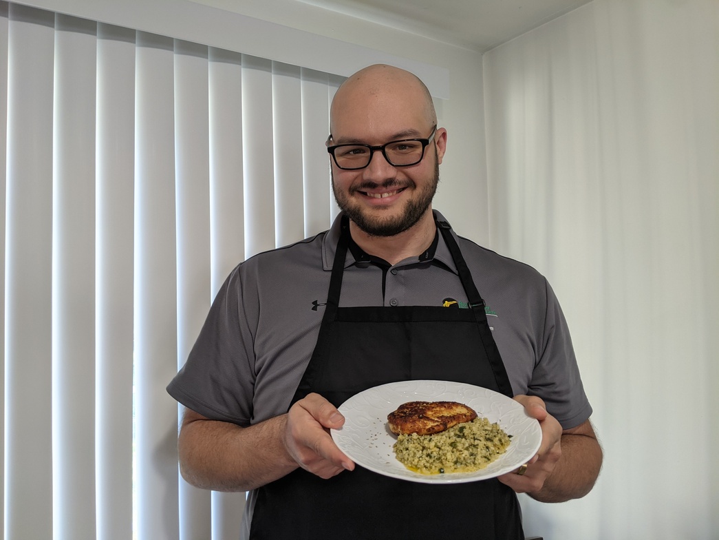 This week we went extra quick and easy. Parm-crusted chicken with riced cauliflower is a great mid-week meal that can be prepped and cooked in less than 30 minutes. Many of the ingredients may already be in your fridge and pantry. You also have the option to try chopping up fresh cauliflower or grab a bag from the frozen vegetable section of Wegmans. This recipe is a blank slate. You can make it your own by adding your favorite flavors and seasonings. Cauliflower is like a sponge and will soak up any flavor you add.